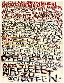 Charlotte Salomon (16 April 1917 – 10 October 1943) was a German-Jewish artist born in Berlin. She is primarily remembered as the creator of an autobiographical series of paintings Leben? oder Theater?: Ein Singspiel (Life? or Theater?: A Song-play), the largest known artwork made by a Jewish person who died in the Holocaust,[1] consisting of 769 individual works painted between 1941 and 1943 in the south of France, while Salomon was in hiding from the Nazis. In October 1943 Salomon, 5 months pregnant at that time, was captured and deported to Auschwitz, where she was murdered by the Nazis soon after her arrival.[2][3][4][5] In 2015, a 35-page confession by Salomon to the fatal poisoning of her grandfather, kept secret for decades, was released by a Parisian publisher.[6]