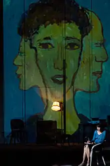In 2017, to coincide with the 100th anniversary of Charlotte Salomon's birth, Charlotte: A Tri-Coloured Play with Music (Composer: Aleš Brezina, Librettist: Alon Nashman, Director/Scenographer: Pamela Howard)[41] was presented at the Luminato Festival in Toronto, and at the World Stage Design Festival in Taipei, Taiwan.[42] This singspiel, which "gives Salomon a wonderfully authentic and persuasive voice onstage",[43] has music by Czech composer Aleš Březina, a libretto by Canadian performer/writer Alon Nashman, and is directed and designed by UK-based Pamela Howard, author of What is Scenography?. Charlotte: A Tri-Coloured Play with Music was developed with the assistance of Canadian Stage Company, and the Isabel Bader Centre for the Performing Arts.[44] The role of Charlotte was played by Canadian soprano Adanya Dunn. In 2019, the company performed the play in Israel, Ukraine, and the Czech Republic.[41][45][46][47]