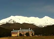 The Grand Chateau, also known as the Chateau Tongariro, is a hotel and resort complex located close to Whakapapa skifield on the slopes of Mount Ruapehu, within the boundaries of Tongariro National Park, New Zealand's oldest national park. It is also close to the volcanic peaks of Mount Tongariro and Mount Ngauruhoe. The building was completed in 1929 and, despite extensive refurbishment, still retains much of the style of the pre-Depression era. It is listed by Heritage New Zealand as a Category 1 historic place.[1] The Chateau Tongariro Hotel closed permanently on 5 February 2023, largely because the building has significant seismic risks.