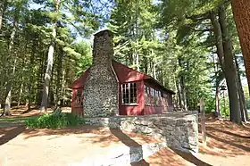 Chatfield Hollow was designated as a state park in 1949.[3] It was developed in the 1930s as a Civilian Conservation Corps recreation area within Cockaponset State Forest.[5] The CCC created Schreeder Pond in 1934 by building a horseshoe-shaped earth and stone dam across Chatfield Hollow Brook. In 1937, Oak Lodge was raised on the west side of Schreeder Pond; the lodge was listed on the National Register of Historic Places in 1986.[6] A "from the ground up" restoration of the lodge was completed in 2017.[7] The region where the park now resides was an important area for indigenous peoples. From the Paleo-Indian time approximately 10,00 years B.C. until the Final Woodland years which end in 1633, the area that Chatfield Hollow State Park occupies was important for fishing, plant gathering, and hunting to the River Indians of New England.[6] The Hammonasset people are recorded as being the first known inhabitants of this area. There are large granite rock overhangs where artifact discovery shows inhabitance long before the first English colonists settled in Chatfield Hollow. These rock overhangs are today known as the Indian Caves and can be visited by hiking a marked trail in the park. The three Chatfield brothers for whom the park is named arrived from England around the year 1639. [7].