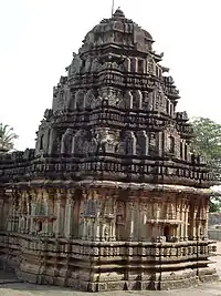 The Mukteshwar Temple is a single cella temple in Jakkanachari style. Similar temples were built under the patronage of Kalachuris of Kalyani or Seuna dynasties. This temple is a jewel of architecture of the 11th–12th centuries. It was built during the heyday of the kingdom ruled by the Kalyani Chalukyas and the Seunas of Devagiri. It is dedicated to an Udbhava (spontaneously born) Lingam named Mukteshwar.