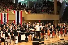 The Chautauqua Symphony Orchestra (CSO) is an American orchestra, and the resident summer orchestra of the Chautauqua Institution in western New York State. Founded in 1929, the ensemble plays concerts on most Tuesday, Thursday, and Saturday nights throughout the Institution's nine-week summer season, in the Amphitheater of the facility. The CSO draws its members principally from US professional orchestras. In addition to standard concerts, the CSO also accompanies programs with the Chautauqua Ballet Company and the Chautauqua Opera Young Artists.
