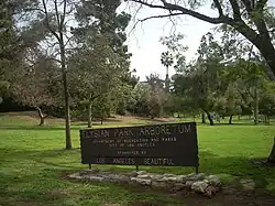 The Chavez Ravine Arboretum, in Elysian Park, just north of Dodger Stadium, at 1025 Elysian Park Dr, Los Angeles, California, contains more than 100 varieties of trees from around the world, including what are believed to be the oldest and largest Cape Chestnut, Kauri, and Tipu trees in the United States. Admission to the arboretum is free.