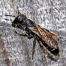 Chelostoma florisomne, the large scissor-bee, is a species of hymenopteran in the family Megachilidae.