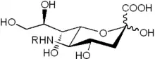 Example of a sialic acid, a commonly studied molecule in glycobiology.
