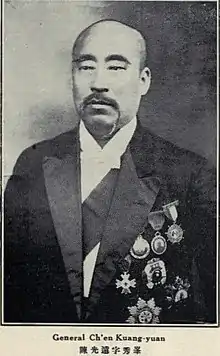 Chen Guangyuan (Chinese: 陈光远; 1873–1939), sobriquet Xiufeng (秀峰), was a Zhili clique warlord and military governor of Jiangxi from August 6, 1917, to June 15, 1922.