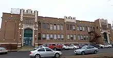 A new high school was built at 460 N. 6th in 1966,[25] and the 1930 building was repurposed to serve as the junior high school until 1977, when the new Cheney Junior High opened on the edge of town. At that point, the building (then renamed the Fisher Building in honor of educator and Cheney mayor George Fisher)[26][27] served the district as administrative offices and for special functions until 2013.[24] The building was declared surplus and sold to a developer in 2014.[28] One of the first developers to express interest in the Fisher Building was Cheney alumnus and former NFL player Steve Emtman.[26]