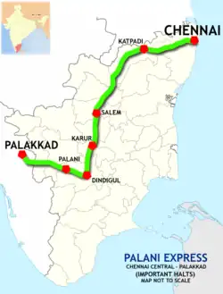 | MGR Chennai Central ↔ Palakkad Junction (via Palani) | |||||