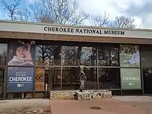 The Cherokee Heritage Center (Cherokee: Ꮳꮃꭹ Ꮷꮎꮣꮄꮕꮣ Ꭰᏸꮅ) is a non-profit historical society and museum campus that seeks to preserve the historical and cultural artifacts, language, and traditional crafts of the Cherokee. The Heritage center also hosts the central genealogy database and genealogy research center for the Cherokee People. The Heritage Center is located on the site of the mid-19th century Cherokee Seminary building in Park Hill, Oklahoma, a suburb of Tahlequah, and was constructed near the old structure. It is a unit of the Cherokee National Historical Society and is sponsored by the Cherokee Nation, the United Keetoowah Band of Cherokee Indians, and other area tribes. The center was originally known as Tsa-La-Gi but is now known as the Cherokee Heritage Center.[1]