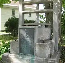 The story of the mammoth cheese has inspired many future events. President Andrew Jackson's supporters commissioned a similar cheese for consumption in 1837, as his supporters believed that "every honor which Jefferson had ever received should be paid him."[13] This event later became the inspiration for a recurring event on the White House television drama The West Wing, entitled "Big Block of Cheese Day."[14] The cheese inspired a critically acclaimed work of fiction, The Mammoth Cheese, by Sheri Holman in 2004 and published by the Grove Press, which told the story about a small town cheesemaker convinced by her pastor to make a giant cheese for the President-elect.[15] The cheese also became the subject of a children's picture book published by Farrar, Straus and Giroux, A Big Cheese for the White House, by Candace Fleming,[16] and was a subject of the American History comedy podcast The Dollop.[17] Today a cast concrete cheese press stands in Cheshire. A plaque dedicated to Leland is affixed to it.[18]