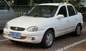 On 12 December 2000, the first Chinese-made Buick rolled off the production line as part of trial production. Series production commenced in June 2001.[8] This car was the first compact car produced by the SAIC-GM joint-venture, and was aimed squarely at young families. The Buick Sail was based on the Opel Corsa B, and the body design is shared with the Brazilian Chevrolet Corsa Classic and India's Opel Corsa Joy. This four-door saloon bodywork was never offered in Europe, instead being intended for developing markets. The only engine choice is a 1.6-litre, 92 PS (68 kW) inline-four engine, coupled to a five-speed manual transmission.[9] The price was under 100,000 RMB. The car went on sale in June 2001. The original Opel Corsa B had also been "assembled" in Guangdong province as the Jilin Jiangbei Meilu JJ7090 from 1993 to 1996. Around 2000 cars were imported nearly complete to fit certain legal loopholes which existed at the time and sold with Jilin Jiangbei badging.[10]