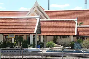 The station was upgraded in 1998 as Thammasat University Rangsit Campus was selected as one of the venues for the 13th Asian Games in the same year. The distinguishing feature of the station is applied Thai-style building complex and A-shaped gables designed in harmony with the logo of the 13th Asian Games.[4]