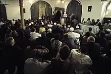 In May of that same year, she was invited to the Malcolm Shabazz Mosque in New York, where once again she simply shared her Christian experience with 3,000 Muslims, referencing quotes from Islam that were similar to the Gospel, to which the crowd responded, "God is great!" At the end of the meeting, she made a pact of fraternity with their leader, Imam Warith Deen Mohammed.[55]