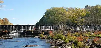 The Chicopee Falls Dam is a masonry stone dam that parallels Route 33 (Bridge Street) in Chicopee, Massachusetts. It is part of the Chicopee River Watershed. The dam was constructed in the late 19th century, and is owned by the City of Chicopee. It impounds the waters of the Chicopee River at Chicopee Falls, to form the Chicopee Reservoir.