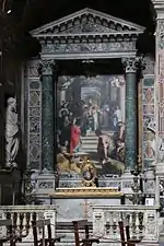 In the left transept is a Presentation of Mary to the Temple (1593–4) by Federico Barocci. He completed two altarpieces that were highly admired in his time, including one in the Chapel of the Visitation (1583–86).