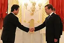 - ↑ "Japanese ambassador to spy on Dmitry Medvedev?" Pravda (Russia). 23 November 2010; retrieved 2013-5-9.