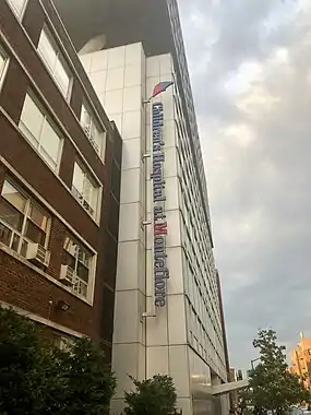 The Children's Hospital at Montefiore (CHAM) is a nationally ranked pediatric acute care children's teaching hospital located in the Bronx, New York.[1] The hospital has 193 pediatric beds[2] and is affiliated with the Albert Einstein College of Medicine.[3] The hospital is a member of the Montefiore health network and is the only children's hospital in the network. The hospital provides comprehensive pediatric specialties and subspecialties to infants, children, teens, and young adults aged 0–21[4][5][6] throughout the Bronx and New York state. Children's Hospital at Montefiore also sometimes treats adults that require pediatric care.[7] While CHAM does have a pediatric emergency department, they do not have a pediatric trauma center and sends all pediatric trauma cases to the nearby Jacobi Medical Center's level II pediatric trauma center.[8] The Children's Hospital at Montefiore is one of the largest providers of pediatric health services in New York state. The hospital is attached to Montefiore Medical Center and is affiliated with the Ronald McDonald House of New York.[9]