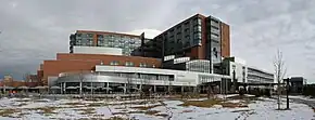 Children's Hospital Colorado (CHCO) is an academic pediatric acute care children's hospital located in the Anschutz Medical Campus near the interchange of I-225 and Colfax Avenue in Aurora, Colorado. The hospital has 434 pediatric beds at its main campus in Aurora.[2] As CHCO is a teaching hospital, it operates a number of residency programs, which train newly graduated physicians in various pediatric specialties and subspecialties. The hospital is affiliated with the University of Colorado Denver School of Medicine.[3] The hospital provides comprehensive pediatric specialties and subspecialties to infants, children, teens, and young adults aged 0–21[4][5] and sometimes until 25[6][7][8] throughout Colorado and the Midwest. The hospital also sometimes treats adults that require pediatric care.[9][10] Children's Hospital Colorado is the only children's hospital (verified by the CHA) in Colorado. Additionally, The hospital has outpatient centers, campuses, and doctors offices around Colorado.[11] The hospital features an ACS verified Level 1 Pediatric Trauma Center[12][13] and features a rooftop helipad to transport critically ill patients.[14]