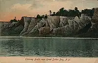 The Chimney Bluffs area has been a landmark for many years. According to the pamphlet given by the park, smugglers used the area as a landing point while transporting liquor from Canada during Prohibition. The area was acquired by the state of New York in 1963[3] after having previously been operated informally as a privately owned recreation area.