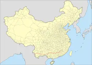 China National Highway 323 (G323) runs southwest from Ruijin, Jiangxi towards Guangdong Province, Guangxi Province, and ends in Lincang, Yunnan, which is on China-Myanmar border. It is 2,915 kilometres in length.