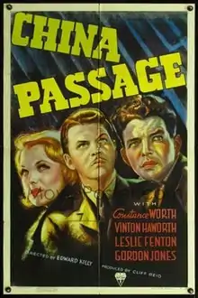 China Passage is a 1937 American mystery film directed by Edward Killy from a screenplay by Edmund L. Hartmann and J. Robert Bren, based on a story by Taylor Caven. RKO Radio Pictures produced the film, which stars Constance Worth, Vinton Haworth, Leslie Fenton and Gordon Jones. Haworth was injured in an automobile accident in January 1937, delaying the film's released until March 12, 1937.
