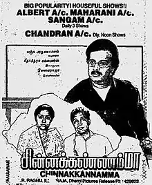 Chinna Kannamma is a 1993 Indian Tamil language drama film directed by R. Raghu. The film stars Karthik, Gautami, Suhasini, Nassar and Shamili. It was released on 29 January 1993.[1][2][3]