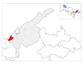 Chinoz is a district of Tashkent Region in Uzbekistan. The capital lies at the city Chinoz.[1] It has an area of 340 km2 (130 sq mi)[2] and it had 136,100 inhabitants in 2021.[3] The district consists of one city (Chinoz), 9 urban-type settlements (Olmazor, Yangi Chinoz, Gulzorobod, Doʻstlik, Paxta, A.Temur, Birlik, Chorvador, Kir) and 8 rural communities (Isloxat, Eshonobod, Turkiston, Oʻzbekiston, Chinoz, Eski Toshkent, Koʻtarma, Yollama).[1]