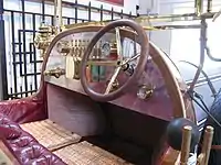 The primary "Chitty" used to photograph most of the driving sequences in the film is a fully functional road-going car with New Zealand registration GEN 1I (formerly UK registration GEN 11). This car was designed by the film's production designer, Ken Adam, and cartoonist and sculptor Frederick Rowland Emett, built by Alan Mann Racing in Hertfordshire in 1967, fitted with a contemporary Ford 3000 Essex V6 engine and automatic transmission and allocated a genuine UK registration.[2] The wooden body was manufactured by ship builders.[6] They employed Architectural Metal Workers, Leonard and Eric Harrington of Ware to manufacture the external metal components. Actor Dick van Dyke, who drove the car in the film, said that "the car was a little difficult to maneuver, with the turning radius of a battleship".[7] Chitty prime is approximately 17+12 ft (5.3 m) long and weighs 2 short tons (1.8 t).[8] Externally, the roadgoing Chitty prime can be distinguished from the other filming models by the presence of small position lights atop the front fenders to meet motor vehicle standards.