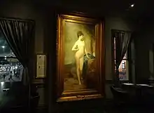 Chloé was then purchased by Dr Thomas Fitzgerald of Lonsdale Street, Melbourne, for 850 guineas.[3] Fitzgerald loaned the painting to the National Gallery of Victoria. In 1883, controversy arose when the painting was to be exhibited on Sundays, so Fitzgerald withdrew Chloé from the gallery.[4] In response artist Alexander Colquhoun, in satirical verse at The Buonarotti Club that year, urged the Victorian National Gallery to rehang the painting.[5] Upon Fitzgerald's death in 1908, the painting was purchased at auction by Henry Figsby Young, owner of the Young and Jackson Hotel.[3] In 1908, Young installed the painting in the hotel's saloon bar.[3]