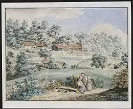 The Kohler chocolate factory was one of the first in Switzerland, shortly following that of Cailler. The first factory was created in 1830 by Charles-Amédée Kohler, and his brother Frédéric Kohler, sons of Amédée Kohler (1761-1833), a trader in colonial foodstuffs since 1793. In 1849, Charles-Amédée Kohler bought the municipal sawmill in the Sauvabelin forest where he moved the production of chocolate.[2] The newly built factory used the hydraulic power of the Flon river to allow the grinding of the cocoa beans. The installation of a steam engine would replace the hydraulic facility a few years later and allow a considerable development of the factory.[3]