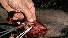 - ↑ Meyer GA, Rashmir-Raven A, Helms RJ, Brashier M (2000). "The effect of oxytocin on contractility of the equine oesophagus: a potential treatment for oesophageal obstruction". Equine Vet. J. 32 (2): 151–5. doi:10.2746/042516400777591660. PMID 10743971.