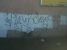 - ↑ Chastanet, François (2009). Cholo writing : Latino gang graffiti in Los Angeles. Dokument Press. ISBN 978-91-85639-21-2. OCLC 318421538.