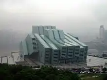 The Chongqing Grand Theatre (or Theater) is a performing arts venue in central Chongqing, People's Republic of China, located overlooking the Yangtze River.[1] The 64-metre six-storey building was constructed from 2005 until 2009. Hassell, a design company, took part in a competition to decide how the building was constructed and laid out.[2] The building contains two concert halls.