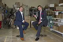 Dawson (left) and Peter Jones (right) on the set of Peter Jones Meets, 25 September 2012