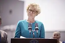 Houlahan ran on a platform that included healthcare, job creation, and campaign finance reform.[24] Other campaign issues she identified included education, family issues, and veteran's issues.[25] Houlahan had a strong record of campaign fundraising,[26] with donations totaling almost $5 million so far.[3][27] She was also endorsed by many organizations, including Emily's List,[28] Human Rights Campaign,[29] Giffords Law Center to Prevent Gun Violence,[30] Project 100,[31] Vote Vets,[32] the Service Employees International Union-PA (SEIU PA)[33] and several other unions.[32]