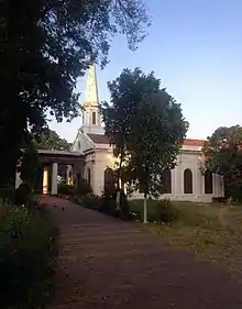 Christ Church is a non-denominational Christian church, previously Anglican, located on Mall Road, Mhow, Madhya Pradesh, India. It was built by men of the Warwickshire and Brecknockshire regiments, the first British army units to be based in Mhow, as a garrison church, and consecrated in 1823.[1] In addition to being a functional church, the building is a major tourist attraction for the array of Commemorative and Memorial plaques that have been installed by various units of the British Army during their tenures at Mhow.