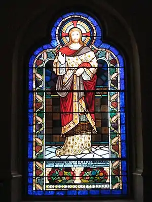 In the 1870s a Carpenter Gothic style building was erected. In 1925 it was greatly enlarged and encased in stone. Those additions also included striking stained glass windows. President Theodore Roosevelt attended church here, and his wife and children were active members. Roosevelt's funeral service was held here in 1919. Today Christ Church is a featured site on the Oyster Bay History Walk audio walking tour.