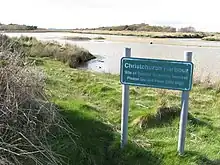 Along part of the south west side of the Stanpit road is Stanpit Marsh. It was formed as the result of action and deposition of material from the rivers Stour and Avon as they meet with the salt water within Christchurch Harbour. Together with Grimbury Marsh, it forms one of the largest areas of salt marsh in the county.[22] It is a Site of Special Scientific Interest (SSSI) and an important nature reserve of about 65 hectares (160 acres), combining both freshwater and saltwater habitats.[23] It is an important staging point for migratory birds. A circular path on the marsh uses a prototype Bailey bridge to cross Mother Siller's Channel. The highest point of the marsh is Crouch Hill at 15' above sea level.[22]