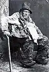 Christen Christian Larsen was a cripple and vagabond from Himmerland, Denmark, who had the nickname Tordenkalven (English: Thunder calf). His mother was Maren Christensdatter and his father, Lars Sørensen, a house servant. He is especially known through Johannes V. Jensen's story about him. Tordenkalven was born outside marriage on 12 September 1816 at Stenildvad in Aars parish. The family was very poor and he began to beg him for the family when he was only seven. After his confirmation he was employed on several farms. He was known for his enormous strength. When called up, he joined the infantry, but after two days in service he was discarded. During his appointment at the manor house Lundbæk at Nibe, he rode a horse, but it threw him off and he broke his leg. An incorrect coagulation of the femur disabled him and he went around on crutches as a tramp until his death in 1891. Tordenkalven died on 5 December 1891 at Søren in Veggerby near Nørre Tranders. He was buried at Nørre Tranders Church where a large granite stone carved by sculptor Carlo Vognsen stands as his memorial.[1][2]