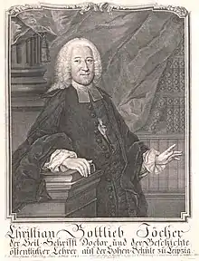 Christian Gottlieb Jöcher (20 July 1694 – 10 May 1758) was a German academic, librarian and lexicographer.