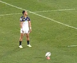 Leali'ifano made his Super Rugby debut in 2008 against the Crusaders in Christchurch.[1] He played fly-half in 2008 and 2009, before shifting to inside centre when Matt Giteau returned to the Brumbies in 2010.[3] Leali'ifano played six Super 14 games for the Brumbies in 2010 before being sidelined with a knee injury (rupture to his posterior cruciate). He recovered by July to play in the ITM Cup for Waikato in 2010,[1] and he played fourteen matches for the Brumbies in 2011.
