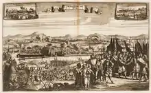 After his return from campaigning in the May 1713, Linger was released from active service. After the ascension of the so-called Soldier King, on 2 January 1714, Linger was reactivated in service and, a year later, served against Sweden in the Great Northern War. He participated in the occupation of Pomerania. After his activities in the sieges of Stralsund, and Stetten, he was promoted in 1716 to colonel and proprietor of the Prussian Artillery crops. With this new position, he centralized the royal Prussian artillery. He refortified the Berlin armory; he also refitted the factory in which armaments were made. Under his leadership, the factory produced large amounts of armaments and cannons for the First Silesian War. Linger standardized the caliber of the cannons, so that they had reliably configured 3, 6, 12, and 14 gauge barrels, making it easier to manufacture standardized cannonballs that would fit the proper-sized cannons. In 1724, he was appointed as a regional captain and councilman of Rosenberg, and in 1728, raised to the rank of major general. His loyalty to the Prussian king was rewarded when Frederick William made him a member of the military cabinet in 1730; after the Crown Prince's abortive attempt to flee to England, Linger was required to participate in the court-martial of Hans Hermann von Katte. Shortly before Frederick William's death, he promoted Linger lieutenant general in 1739.[2] Under his successor, Frederick II, Lingen organized the Siege of Brieg in the First Silesian War. After the occupation of Silesia the fortress at Glogau was expanded under his supervision. His strength lay in the establishment and construction of new Silesian artillery companies. In 1743, Linger was promoted to the general of the artillery, the first to hold that rank. A year later, Frederick the Great honored his worthy general with the award of the Black Eagle Order. During the Second Silesian War, Linger, already 75 years old, was at the head of the field artillery regiment at the Battle of Prague. He organized and directed the bombardment of the city, resulting in Prague's surrender on 16 September 1744. It was his last military action.[2]