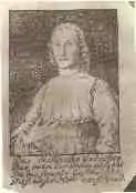 Mid-18th-century engraving with the (translated) words "The lovely poem/which one can see from his forehead/is the simple story/that our lord departed."