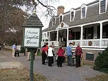 After she returned to Williamsburg Campbell began working as an innkeeper.[8] She rented several tavern locations before moving to her permanent location in 1771, a one-story tavern that had a large public room, cellar, and a separate kitchen structure. Campbell initially rented this location as well, but she finalized a purchase of the land in 1774.[8] This purchase was a sign of Campbell's prosperity in her business and was also helped along by a bequest given to her by Nathaniel Walthoe, who had served as her landlord in the past and from whose estate she purchased her current property.[8]