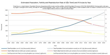 Registration of vital events is in São Tomé & Príncipe not available for recent years. The Population Departement of the United Nations prepared the following estimates. [4]