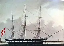The sale of Kronprindsessen in 1827 had left Christianshavn as the last ship still owned by the Danish Asiatic Company. [4] Christianshavn was subject to a complete overhaul at the Royal Dockyard in 1828. She was subsequently renamed Frederik CI,