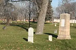 Pillar on right is monument for Charles W. Christmas (1798-1904) in Minneapolis Pioneers and Soldiers Memorial Cemetery.