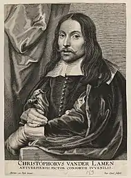 Christoffel Jacobsz van der Laemen or Christoffel van der Laemen[1] (1607/1620 – c. 1651) was a Flemish painter who specialized in merry company scenes with elegant figures.[2] His favorite themes were card and backgammon players, brothel scenes, the prodigal son, dancing, music making and scenes of food and drink set in elegant rooms, inns and gardens.