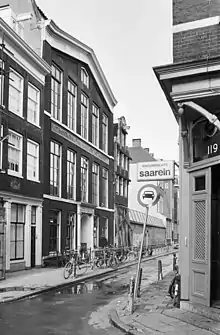Van Dijck then changed career to become a specialist in cutting steel punches, the masters used to stamp matrices, the moulds used to cast a letterform in metal type.[lower-alpha 2] How he began this career change is not documented; John A. Lane, a historian of printing in the Netherlands and expert on van Dijck's career, speculates that he may have begun by cutting types for other typefounders.[12] In 1647 he rented a house on the Bloemgracht in which he set up a type foundry.[7][12][15] This was close to the printing office of his client Joan Blaeu.[12] By the end of his career his foundry was based on Elandsstraat.[16][17] He died in November 1669 and was buried in the nearby Westerkerk.[17] His near contemporary Rembrandt had been buried there the previous month.[18]