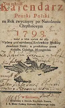 Kalendarz Pruski - Polski (Prussian-Polish calendar), published in Königsberg 1793.